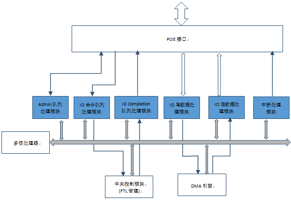 因为PCIE接口的高带宽,NVMe协议带来SSD访问的高效率,但也同时带来了SSD控制器端NMVe协议栈实现的难度和挑战。这个挑战主要是