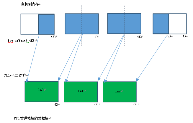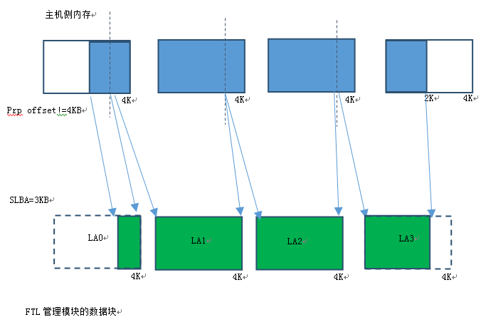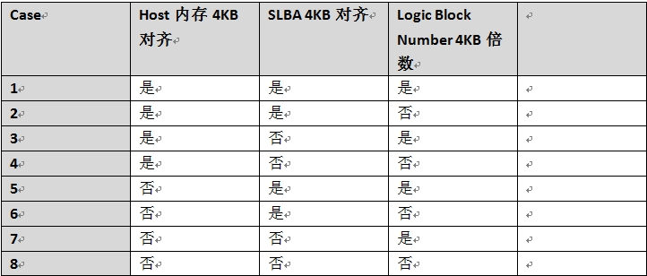 Host内存4KB不对齐,SLBA 4KB不对齐,Logic Block Number=4KB整数倍