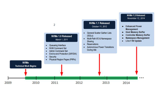 NVMe协议是在PCIe SSD开始大量出现在市场上后,因为各个厂家的私有协议不具有兼容性,无法和现有操作系统无缝衔接,INTEL为了统一接口协议建立生态,而在2011年发布了NVMe协议。