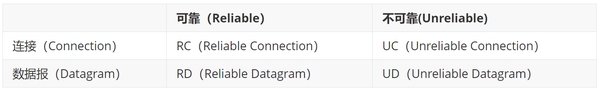 我们在“Elements”一文中提到过,RDMA的基本通信单元是QP,而基于QP的通信模型有很多种,我们在RDMA领域称其为“服务类型”。IB协议中通过“可靠”和“连接”两个维度来描述一种服务类型。
