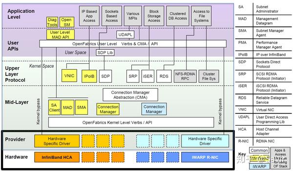 全称为OpenFabrics Enterprise Distribution,是一个开源软件包集合,其中包含内核框架和驱动、用户框架和驱动、以及各种中间件、测试工具和API文档。