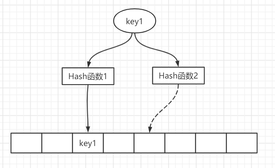 最原始的布谷鸟哈希方法是使用两个哈希函数对一个key进行哈希,得到桶中的两个位置,此时