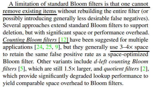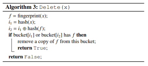 布谷鸟过滤器就像计数布隆过滤器,可以通过从哈希表删除相应的指纹从而删除插入的项,其他具有类似删除过程的过滤器比布谷鸟过滤器更复杂。