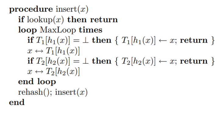 当遇到这种情况时候,说明布谷鸟 hash 已经到了极限情况,应该进行扩容,或者 hash 函数的优化。所以,你再次去看伪代码的时候,你会明白里面的 MaxLoop 的含义是什么了。